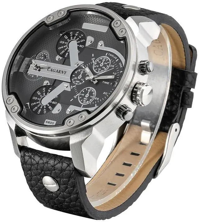 1. Fashionable large dial, quartz movement, concise style mens wrist watch. 2. High quality leather band and alloy case. 3. With GMT time, calendar and luminous display functions. 4. Clasp type: buckle. 5. Built-in battery.