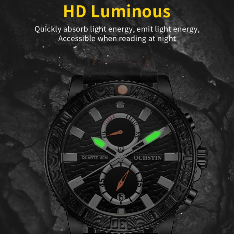Ochstin 6045A Multifunctional Quartz Luminous Genuine Leather Men Watch (Gold+Yellow)