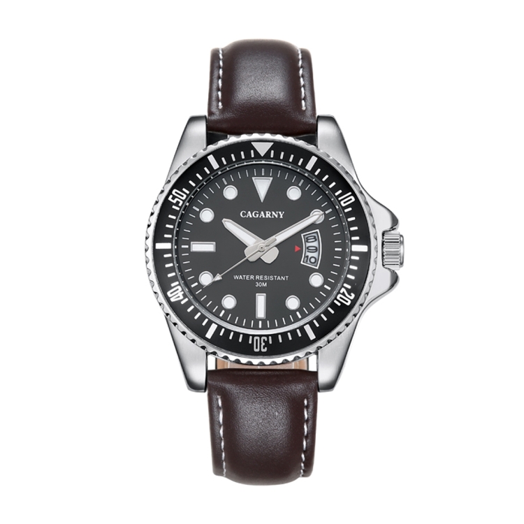 CAGARNY 6863 Fashion Waterproof Quartz Movement Wrist Watch with Leather Band (Coffee)