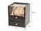 Winds two watches simultaneously (or individually) and has front storage display for four additional watches Runs on included power adapter Walnut Finish Veneer Cream faux calf hide fabric lining