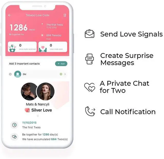 [All Functions Built for Love] Secret messages: Through totwo App, you can send secret messages and love letters to surprise your beloved. Once your partner touches their bracelet, the messages will be revealed on their phone. Anniversary Reminder: Your totwoo bracelet will automatically remind you of important dates. Never miss another birthday or anniversary again. Call Reminder: Add 3 important contacts in the app, and your bracelet will vibrate and flash to notify you when receiving a call.