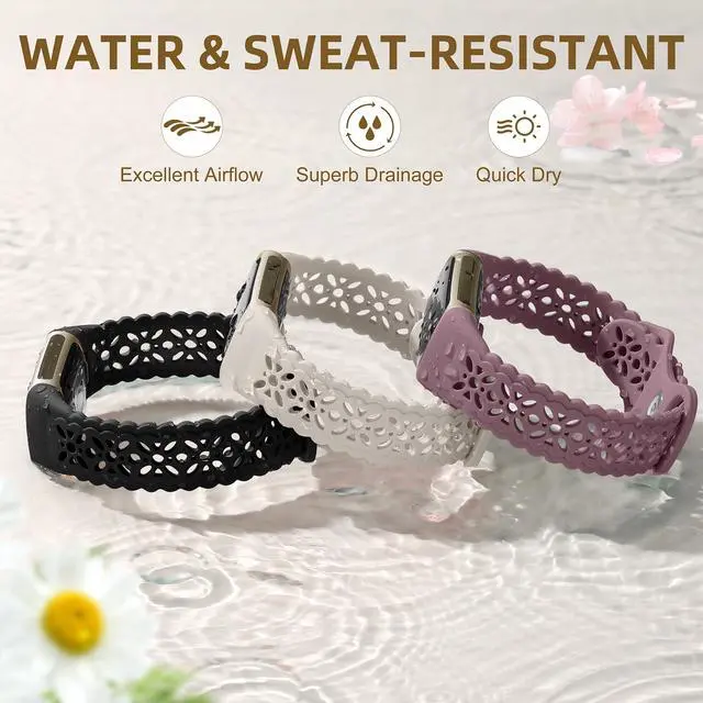 Comfy and Breathable to WearMade of high-grade soft silicone material, these floral engraved bands are flexible, lightweight, and comfortable. More air holes allow the wind and liquid to pass easily, keeping you cool and dry all day longmaking them the best choice for exercise or sport.
