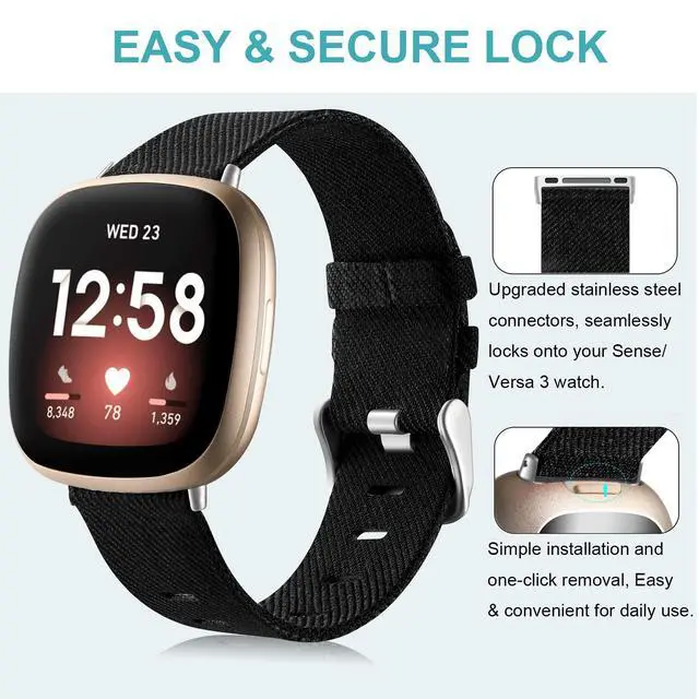 Colors & Sizes. Woven bands are available in a decent look and various colors, allowing you to dress up your Sense/Versa 3 to fit your mood and outfit in daily life. Ideal for both casual occasions and professional purposes.