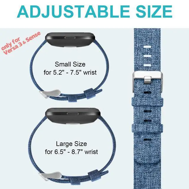 Colors & Sizes Woven bands with a decent look in various colors dress up your Sense/Versa 3 to fit your mood and outfit, perfect for casual occasions and professional purposes. Fits wrists from 5.2" to 8.7".