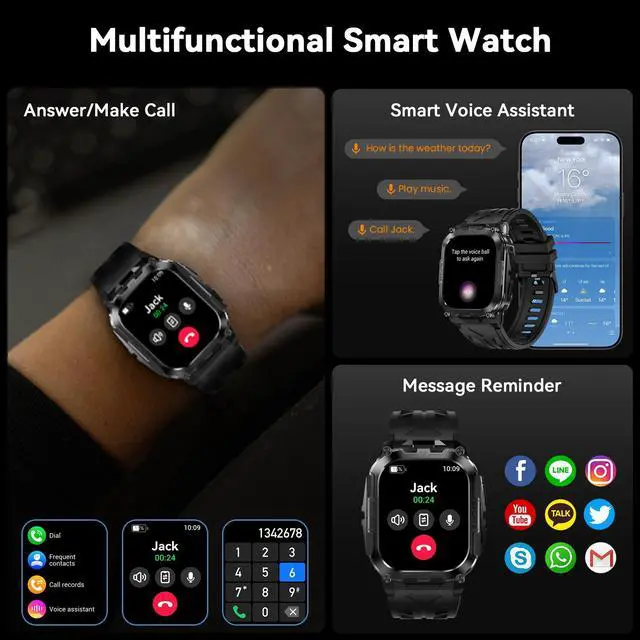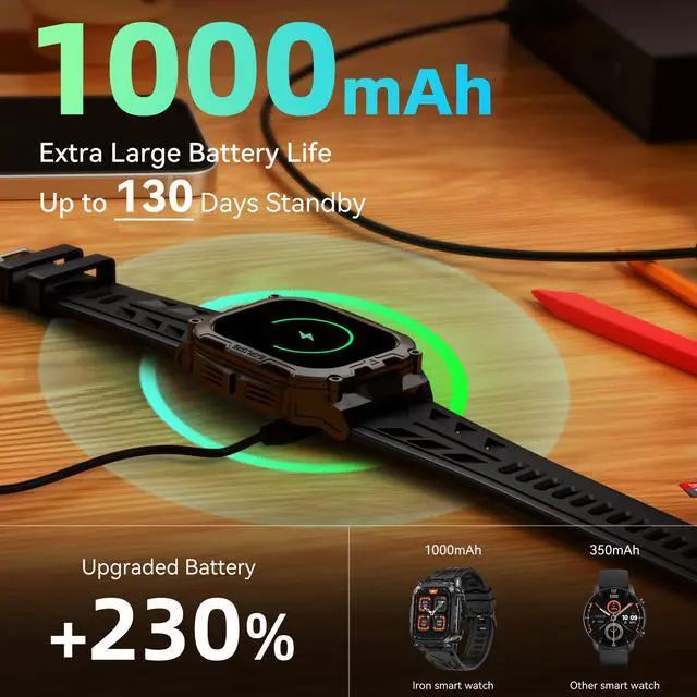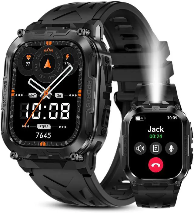 JAYSUING Smart Watch for Men, 130 Days Extra-Long Battery, 1.96" Full Metal Rugged Military Watch, 50M Waterproof, Flashlight, 24/7 Heart Rate Sleep Monitor, Answer/Dial Calls, for Android & iOS