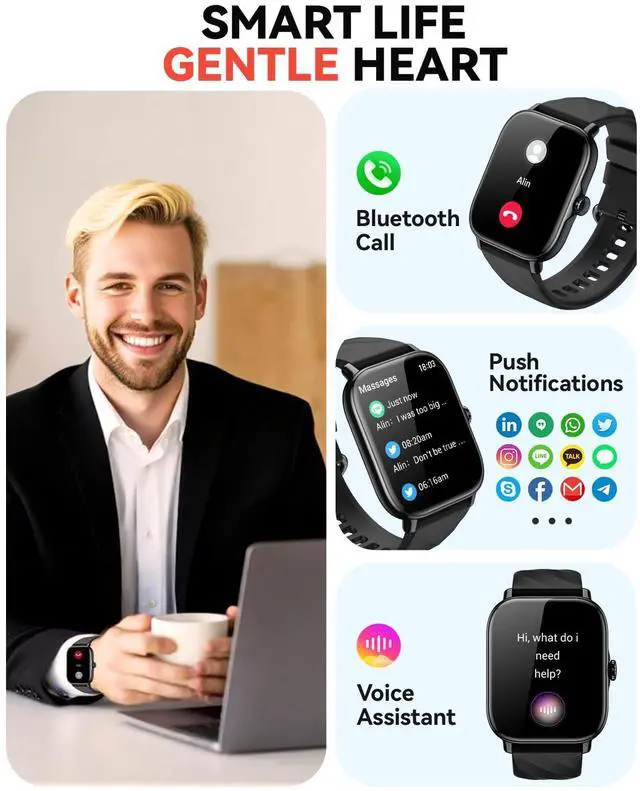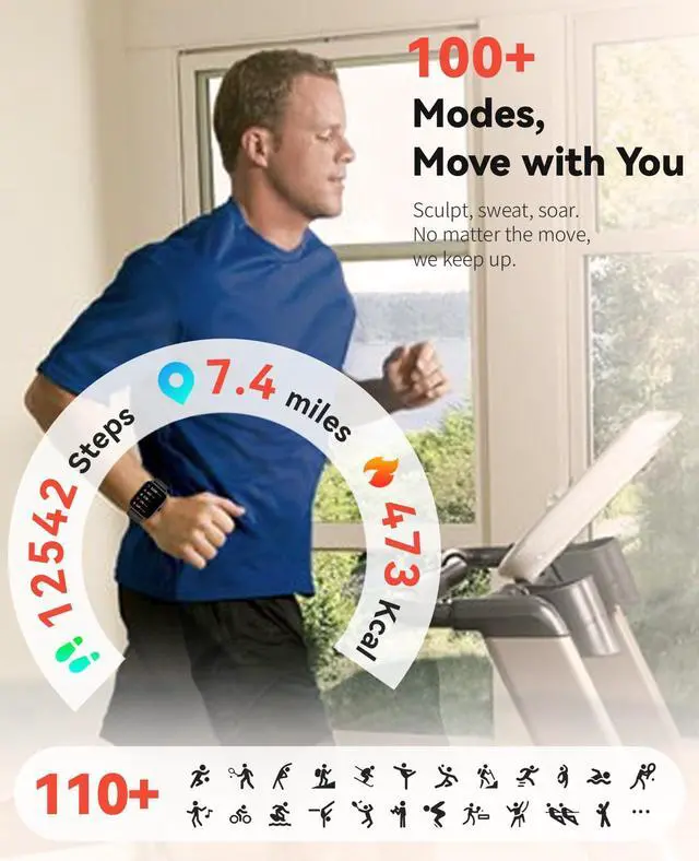 Meet your ultimate all-in-one smartwatch, designed to seamlessly integrate into every aspect of your life. As a versatile companion for both men and women, it begins by simplifying fitness with a precise pedometer for walking steps and miles, automatically tracking calories and distance while supporting your goals with 110+ sport modes. Stay connected effortlessly with advanced Bluetooth calling and a voice assistant that lets you manage tasks hands-free. It intelligently reminds you to move, hydrate, and helps you monitor your well-being, including features for the modern womanun reloj inteligente para mujer that offers discreet cycle tracking. Express your style with 200+ watch faces or a custom photo background, and switch between three included bands for any occasion. With broad Android and iOS compatibility, it's the complete package ready to elevate your daily routine right out of the box