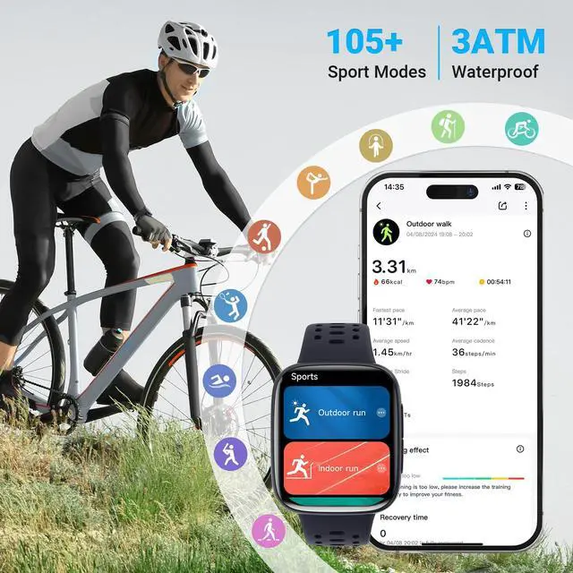 ![Alt view image 4 of 7 - Smart Watches for Men Android iPhone (2 Bands), [1.85" AMOLED Screen] Smartwatch Fitness Tracker 3ATM Waterproof with Bluetooth Calls, AI Control, Heart Rate/SpO2/Sleep Monitor, 7 Days Battery](https://c1.neweggimages.com/productimage/nb640/C47HD2603200BE5JREE.jpg)
