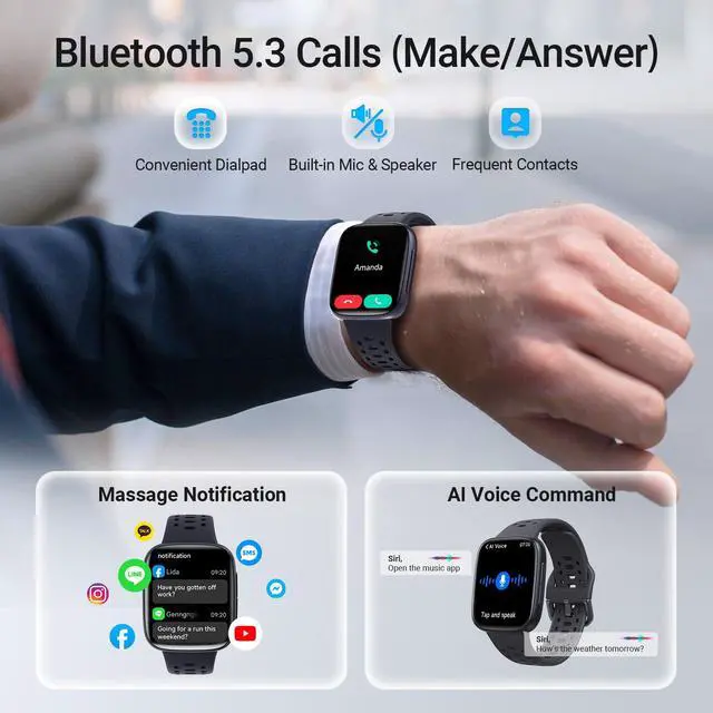 ![Alt view image 6 of 7 - Smart Watches for Men Android iPhone (2 Bands), [1.85" AMOLED Screen] Smartwatch Fitness Tracker 3ATM Waterproof with Bluetooth Calls, AI Control, Heart Rate/SpO2/Sleep Monitor, 7 Days Battery](https://c1.neweggimages.com/productimage/nb640/C47HD2603200BE5KD23.jpg)