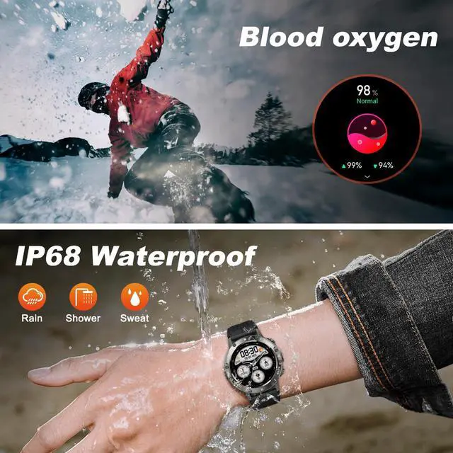 | Special Feature | 1)Fashionable Full Touch Screen Design with classic screen and HD glass screen (color on-screen display) 2)Adjustable grade silicone strap is healthy, environmentally friendly, and very comfortable to wear. 3)Excellent hiking watches / outdoor watch 4All-day activity tracker. (Distance / steps / calories) 5fitness tracker (breathing training / blood oxygen / heart rate / sleep monitoring), Fitness Tracker, Phone Call, Sleep Monitor, Blood Oxygen (SpO2) Monitor, Heart Rate Monitor, Calorie Tracker, Alarm Clock, Stopwatch, Timer, Pedometer, Camera Control, Music Playback/Control, Sedentary Reminder, Weather, Waterproof, Notifications. |