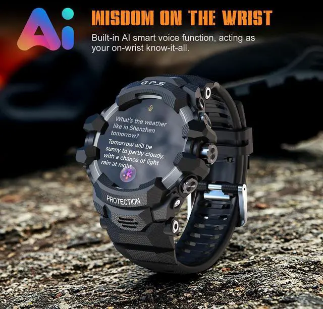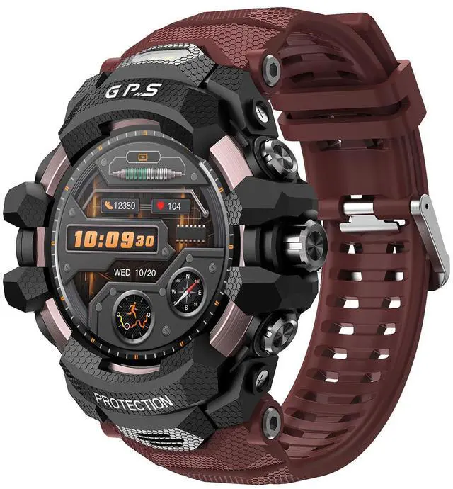 GPS Smart Watch AI Q&A Local Music Playback, GPS Motion Track, SOS Whistle, Compass, Altitude, Dual LED Flashlight, 25-Days Standby, 3ATM Waterproof, Red