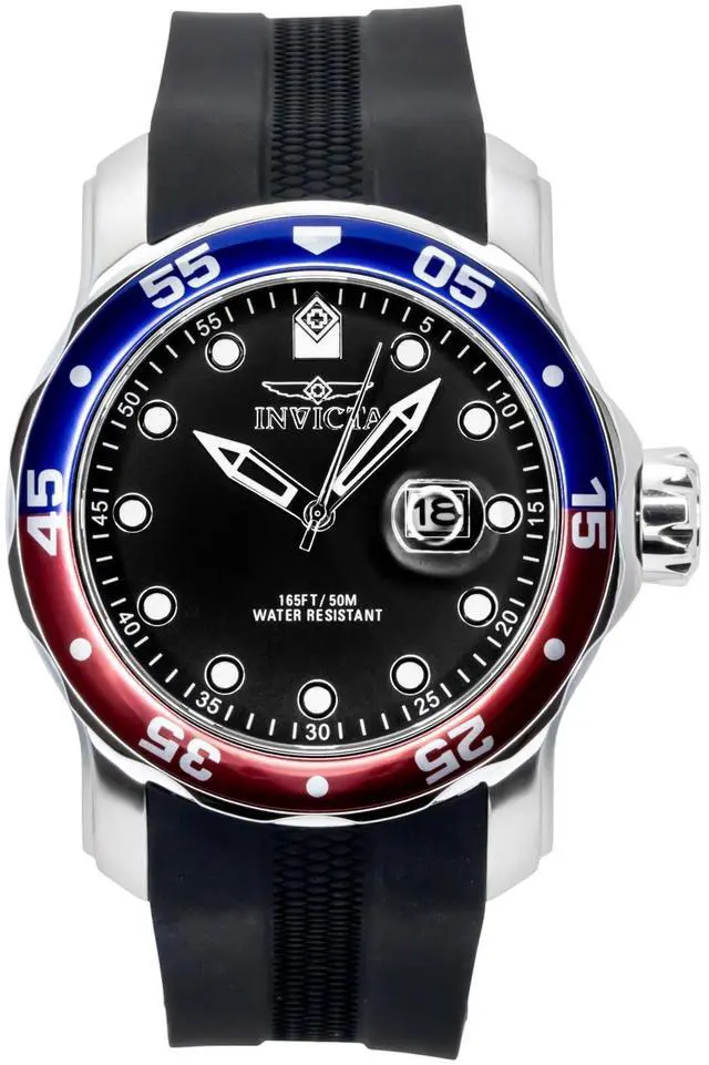Invicta Pro Diver Silicone Strap Black Dial Pepsi Bezel Quartz 45735 200M Men's Watch