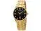 Gold-tone stainless steel case. Gold-tone stainless steel bracelet. Black dial. Quartz movement. Date. Water resistant 30 meters. Case 40 mm.