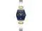 Exceptionally modern and uniquely refined this distinctive womens timepiece from the Bulova Gemini Collection is designed to make a statement. The 22.5 mm silver- and gold-tone stainless steel tonneau-shaped case features a sleek edge-to-edge faceted metalized mineral crystal in blue mirroring the deep-blue dial with gold-tone accents beveled hands and three hand-set. 8mm diamonds. The bangle-style bracelet secures with a jewelers clasp closure. A strikingly sophisticated take on contemporary design this Bulova womens timepiece elevates any ensemble.