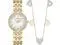 Contemporary design meets upscale refinement with this Bulova ladies box set from the crystal collection. 30mm gold-tone stainless steel case set with 68 crystals. White mother-of-pearl dial with gold-tone accents and 11 sparkling crystal hour markers. Mineral crystal. Watch bracelet embellished with crystals - secures with push-button fold-over safety clasp. Accompanying the impressive timepiece is a gold-tone necklace with alternating heart pendants in mother-of-pearl with 86 crystals. A perfect pairing for the glamorous woman this Bulova ladies box set will elevate any jewelry box. Push Button Fold-Over Clasp. Case 30mm. Water resistant 30 Meters.