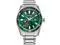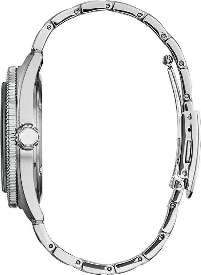 A silver-tone stainless steel case and bracelet band with fold over clasp and push buttons complete this sporty look. Powered by Eco-Drive technology, it never needs a battery. This timepiece will take you from the back nine to the clubhouse under par and in style.