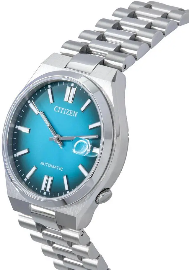 The Citizen NJ0151-88X stands out with its striking turquoise dial, a refreshing splash of color that exudes personality and sophistication. Powered by an automatic movement, this watch offers both precision and reliability without the need for batteries. The stainless steel case and bracelet provide durability, while the sleek design ensures versatility, making it suitable for both business and casual occasions. With a date display and a timeless look, this watch is the perfect blend of function and flair, tailored for those who appreciate both style and substance.