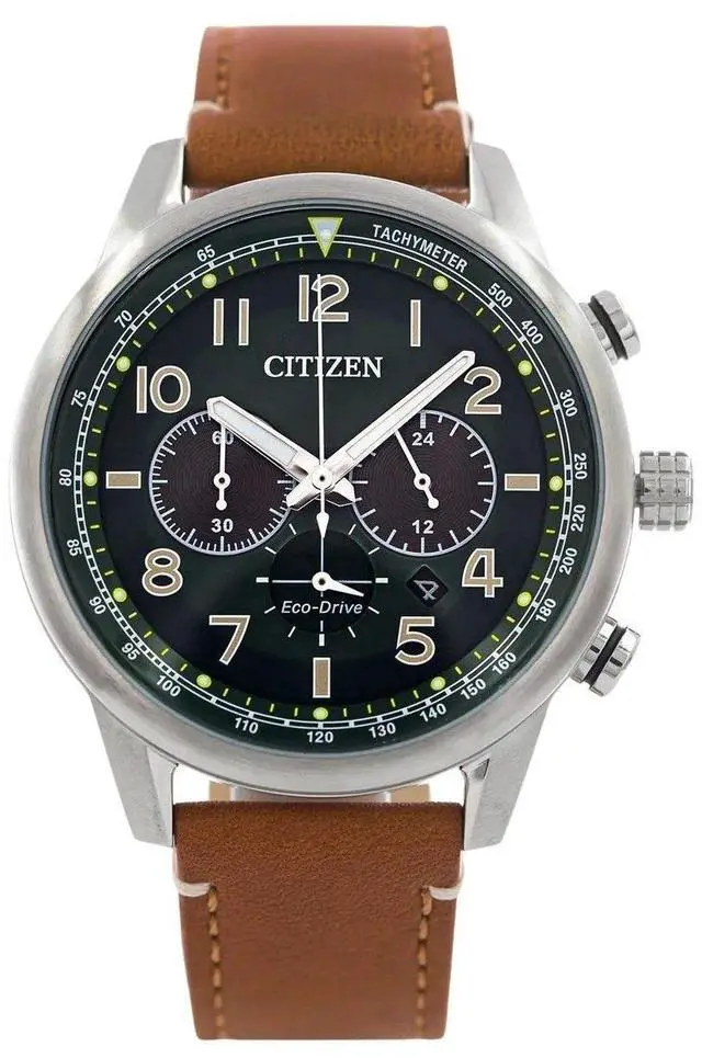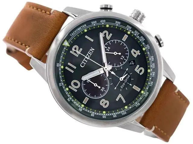 Citizen Eco-Drive Chronograph Leather Strap Green Dial CA4420-21X 100M Men's Watch