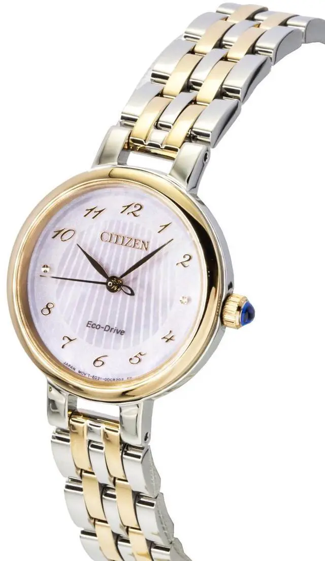 Citizen L Classic Two Tone Stainless Steel Mother Of Pearl Dial Eco-Drive EM0996-84Y Women's Watch