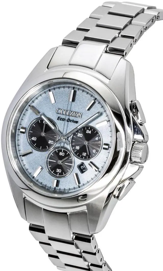 Citizen Sport Luxury Chronograph Stainless Steel Light Blue Dial Eco-Drive CA4680-55L 100M Men's Watch