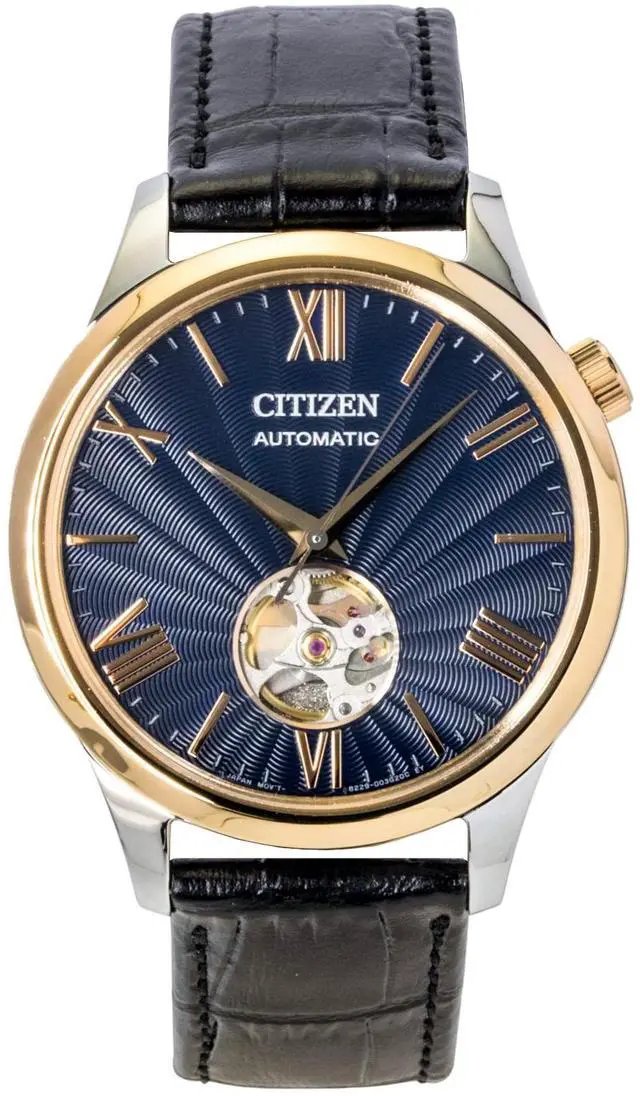 Citizen Leather Strap Open Heart Blue Dial Automatic NH9136-02L Men's Watch
