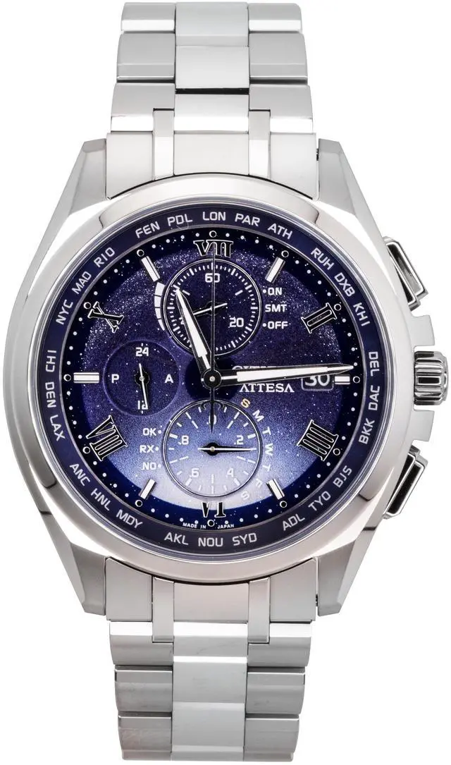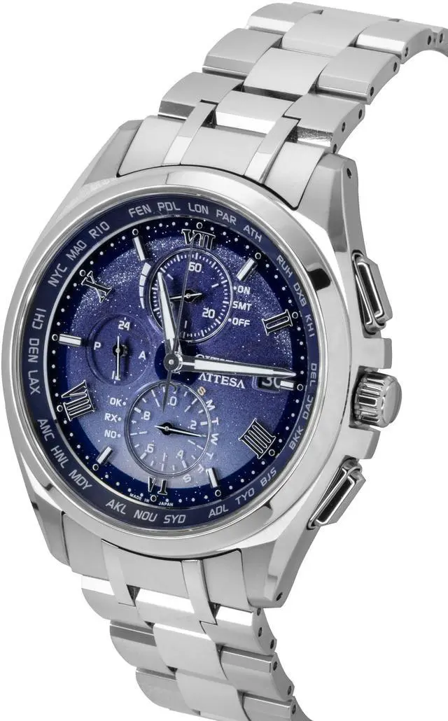 Citizen Attesa Limited Edition Chronograph Super Titanium Blue Dial Eco-Drive AT8240-66L 100M Men's Watch