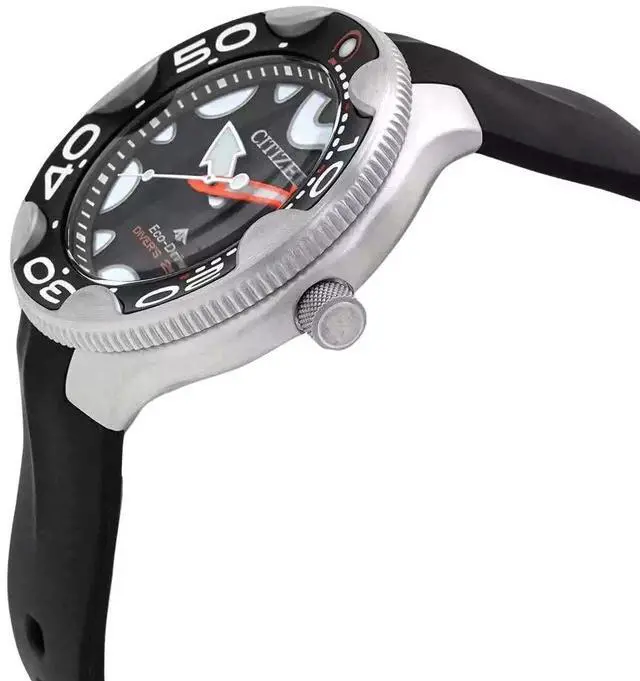 Citizen Promaster Dive Polyurethane Strap Black Dial Eco-Drive BN0230-04E 200M Men's WatchBuilt to conquer the depths, the Citizen Promaster Dive BN0230-04E with its 200M ISO-certified dive rating signals unmatched dependability. This Eco-Drive quartz men's watch charges from any light source, merging sustainability with strength. The bold black dial and oversized luminous markers ensure legibility in the harshest underwater conditions, while the rugged polyurethane strap delivers all-day comfort. A true alternative to traditional automatic watches, itâs designed for those who live by precision, resilience, and purpose-driven performance.