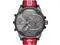 This 57mm Mr. Daddy 2. 0 watch features a detailed gray dial with red accents, chronograph movement and red nylon and silicone strap with white and red logo detail.