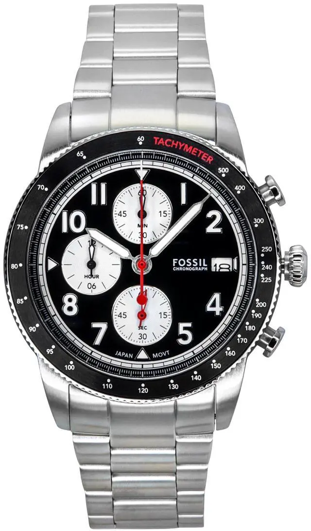 Fossil Sport Chronograph Stainless Steel Black Dial Quartz Men's Watch FS6045