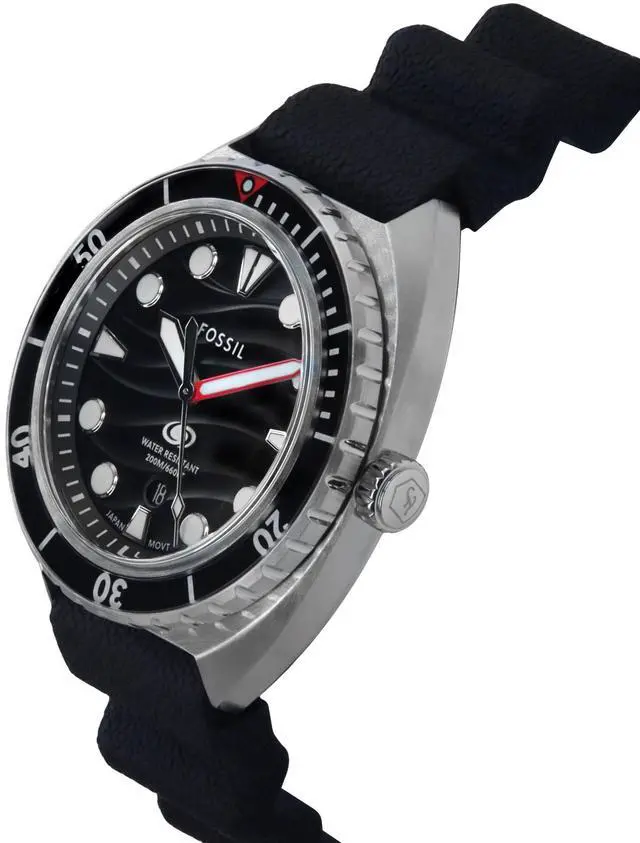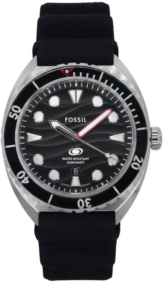 Fossil Breaker Silicone Strap Black Dial Quartz Diver's FS6062 200M Men's Watch