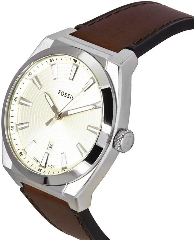 Fossil Everett Leather Strap Cream Dial Quartz FS6071 Men's Watch