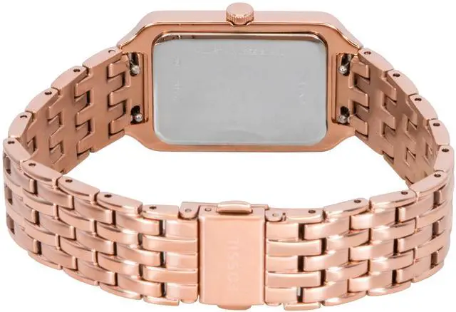 Fossil ES5323 radiates elegance with its rose gold-tone stainless steel case and a captivating brown mother-of-pearl dial. The multifunctional design adds both beauty and practicality, making it a perfect blend of form and function. With precise quartz movement, this watch ensures reliable timekeeping. The stunning sun and moon phases enhance the dialâs allure, making it a unique addition to your collection. Ideal for those seeking a stylish yet reliable watch, the ES5323 embodies sophistication in every tick, a great option for any womanâs quartz watch collection.