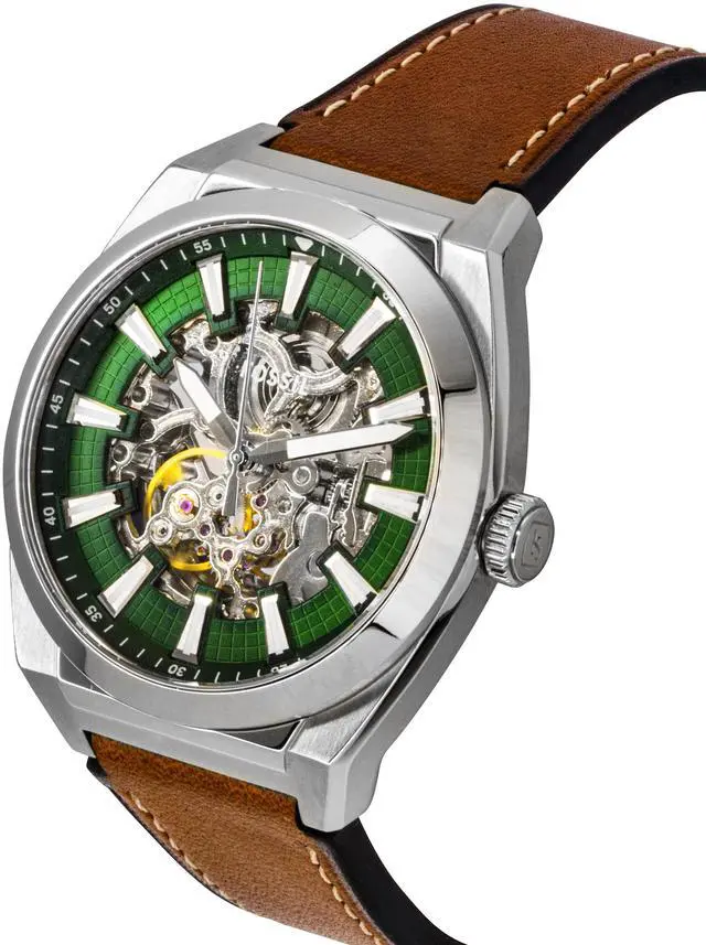 Fossil Everett Brown Leather Strap Green Skeleton Dial Automatic ME3261 Men's Watch