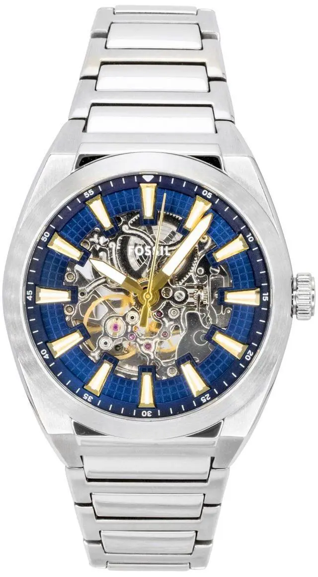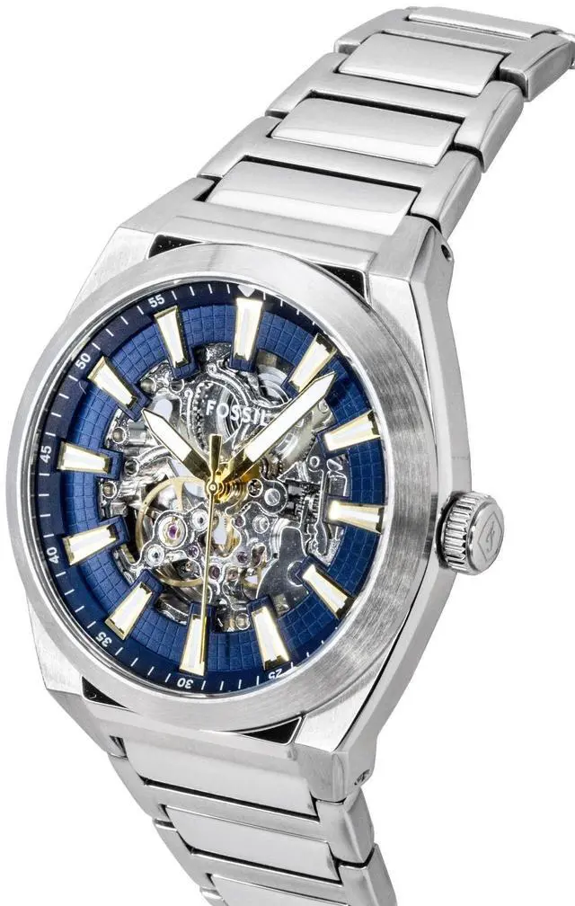 Fossil Everett Stainless Steel Blue Skeleton Dial Automatic ME3220 Men's Watch