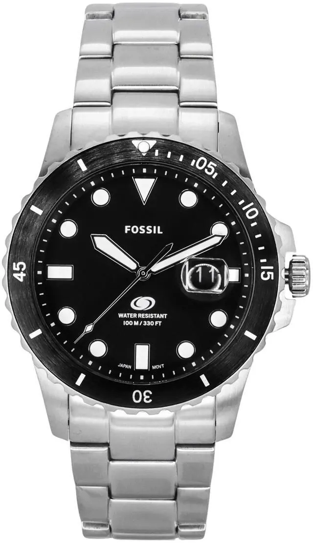 Fossil Blue Dive Stainless Steel Black Dial Quartz FS6032 100M Men's WatchThe Fossil FS6032 stands out with its sleek black dial, complemented by a sturdy stainless steel case and bracelet, offering a refined yet sporty look. This dive watch is built for both style and function, featuring 100-meter water resistance ideal for water activities. The precise quartz movement ensures reliable performance, while the unidirectional bezel adds practical timing functionality. This timepiece is perfect for those who appreciate a blend of classic design and modern durability.