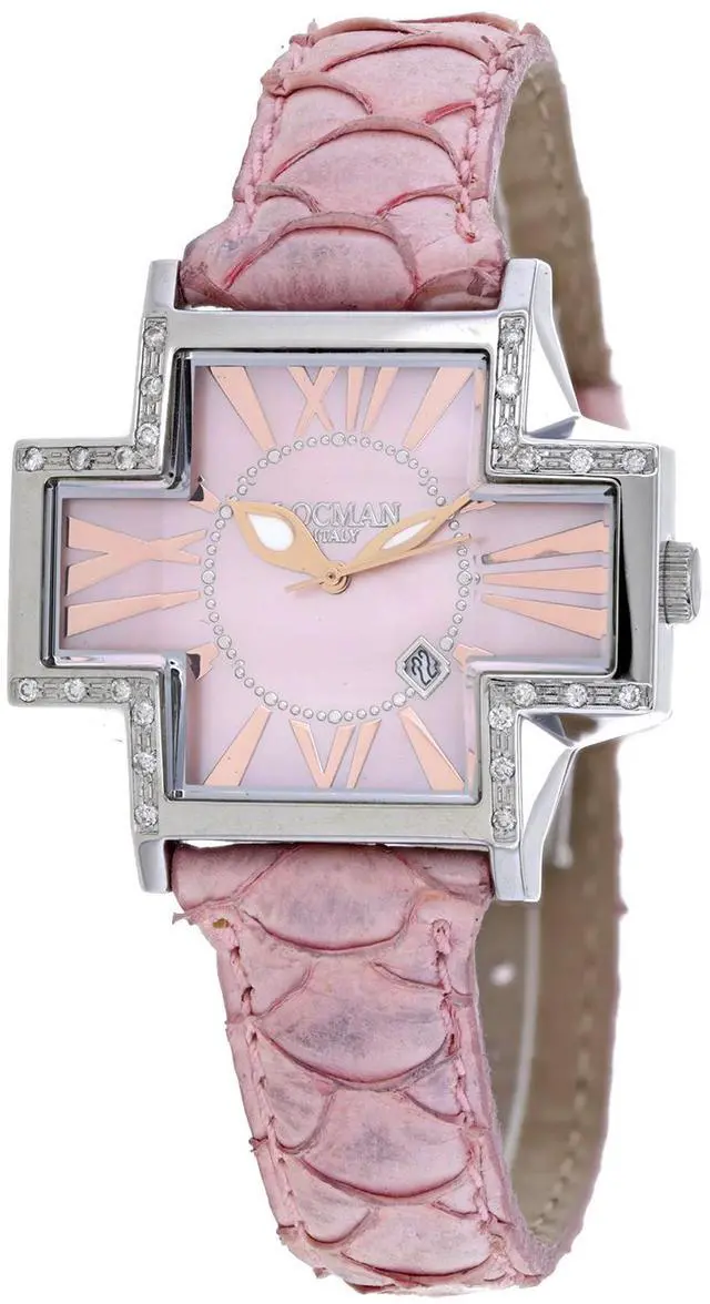 Stainless steel case, Leather strap, Mother of Pearl dial, Quartz movement, Scratch resistant mineral, Water resistant up to 3 ATM - 30 meters - 100 feet