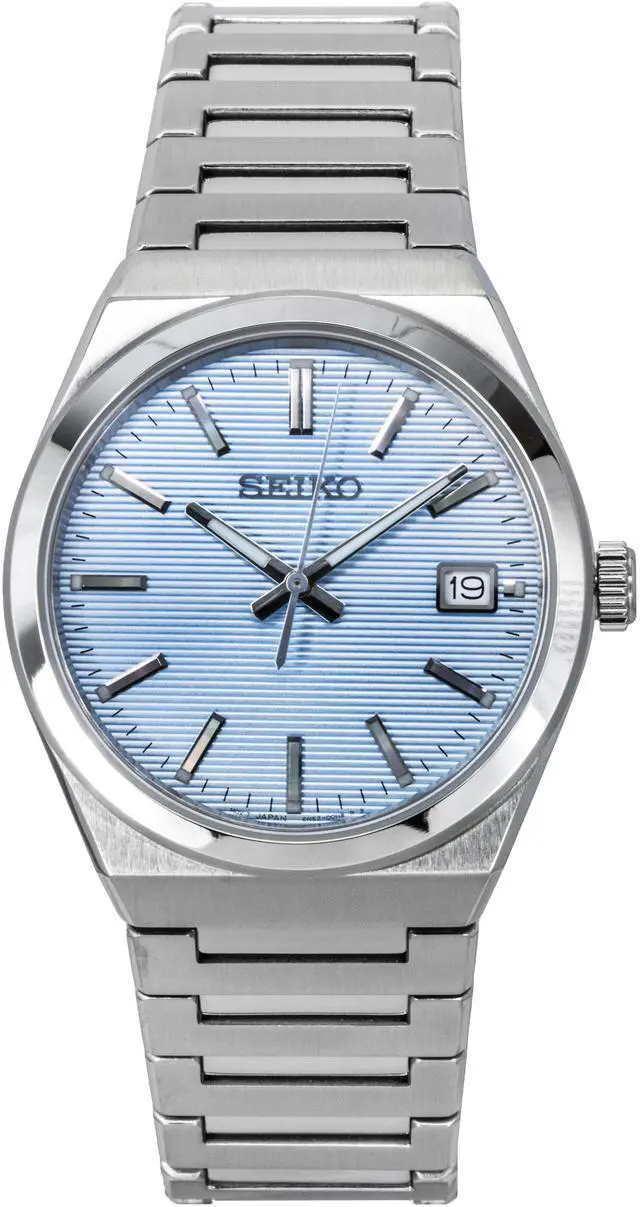 Seiko SUR599P1 shines with its refreshing light blue dial, offering a calm yet sophisticated aesthetic. Powered by quartz movement, this menâs watch provides precise timekeeping with minimal maintenance. The stainless steel case ensures both durability and a timeless design, while the 100-meter water resistance adds practicality for everyday wear and light water activities. Perfect for those seeking a stylish and functional timepiece, the Seiko SUR599P1 offers a refined blend of elegance and reliability, making it an ideal choice for any occasion.