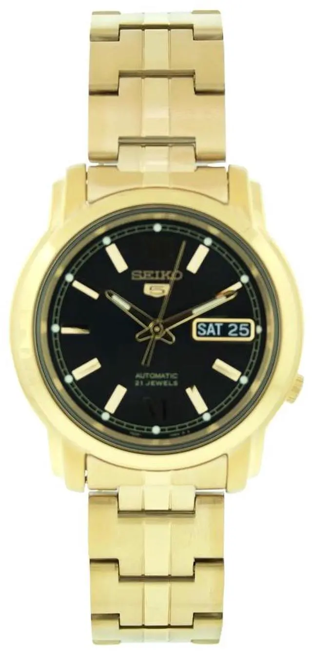 Gold tone Stainless steel case, Gold tone Stainless bracelet, Black dial, Automatic self wind movement, Scratch-resistant Hardlex, Water resistant up to 3 ATM- 30 Meters - 100 feet