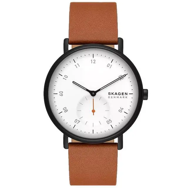 Skagen Kuppel Brown Leather Strap White Dial Quartz SKW6889 Men's Watch