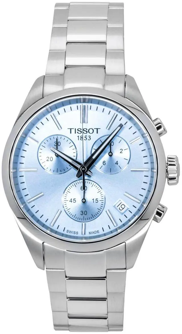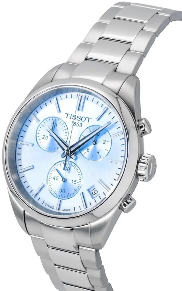 Tissot PR 100 Chronograph Stainless Steel Ice Blue Dial Quartz T 150.417. 11.351. 00 T1504171135100 100M Men's Watch