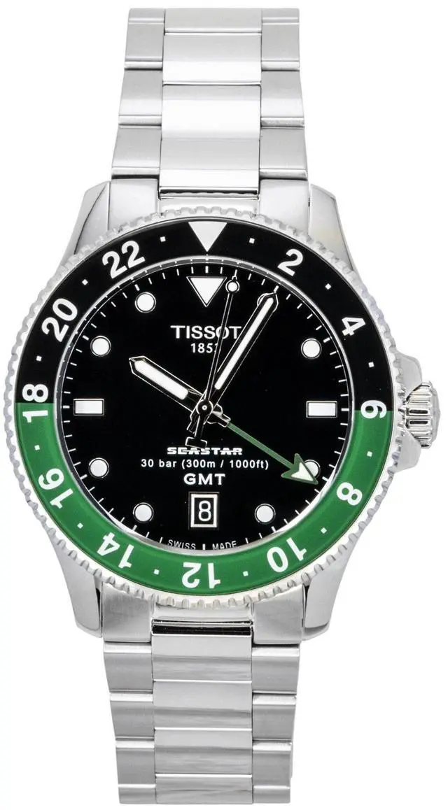 Tissot Seastar 1000 GMT Stainless Steel Black Dial Quartz Diver's T 120.852. 11.051. 00 300M Men's Watch
