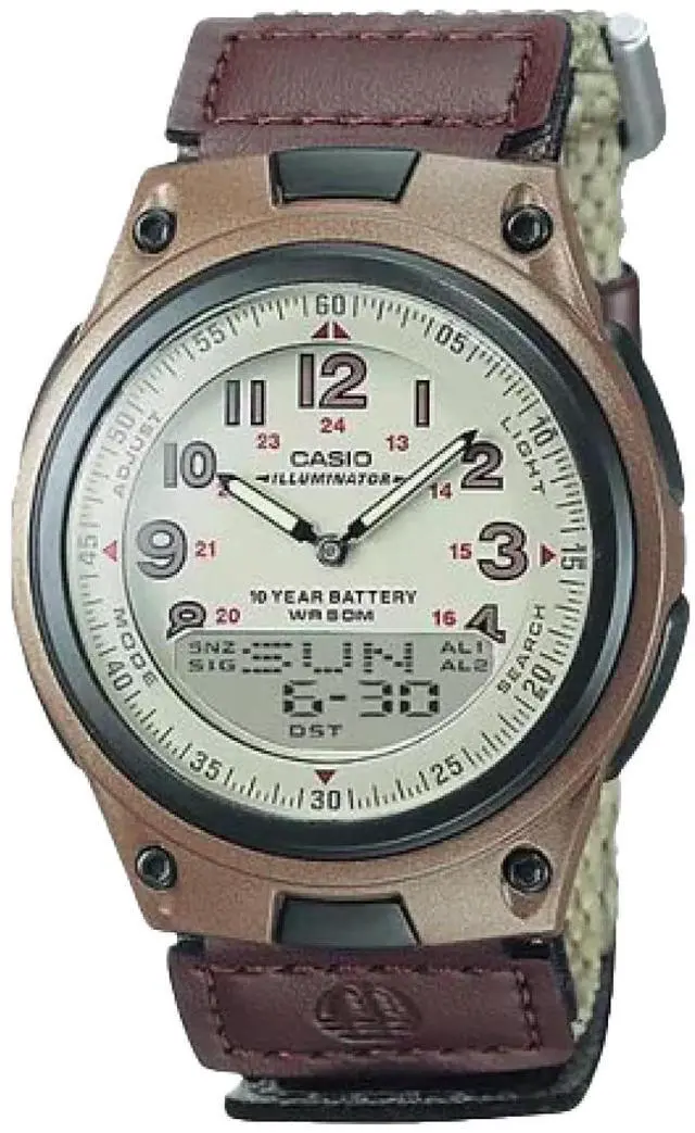 The Casio AW-80V-5BV is a multifunctional timepiece that seamlessly integrates analog and digital displays, catering to both style and utility. Its brown cloth band and cream dial offer a classic aesthetic, making it suitable for various occasions. A standout feature is its impressive 10-year battery life, minimizing the need for frequent replacements. The watch includes a Telememo function, allowing storage of up to 30 sets of data, each with an 8-character name and a 16-digit telephone number, providing quick access to essential contacts. For global travelers, the World Time feature displays current times in 30 cities across 29 time zones.