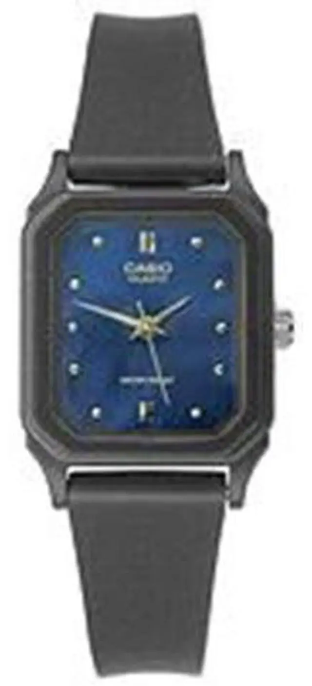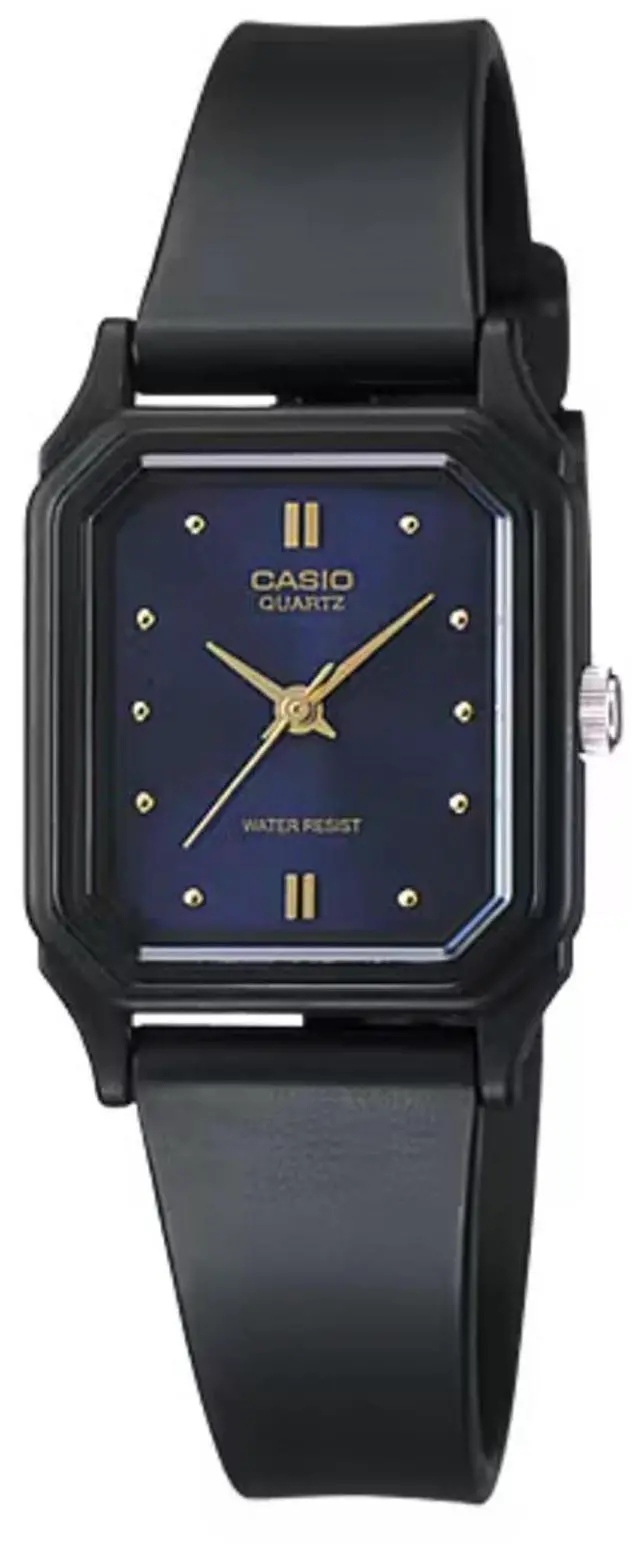 The Casio LQ-142E-2A is a perfect balance of simplicity and sophistication. Featuring a deep blue rectangular dial with gold-tone hands and markers, this womens watch brings a subtle touch of elegance to everyday style. The slim black strap ensures a comfortable fit, while the lightweight design makes it ideal for daily wear. With quartz accuracy and water resistance, its a reliable and chic accessory for women who appreciate minimalist design.