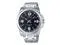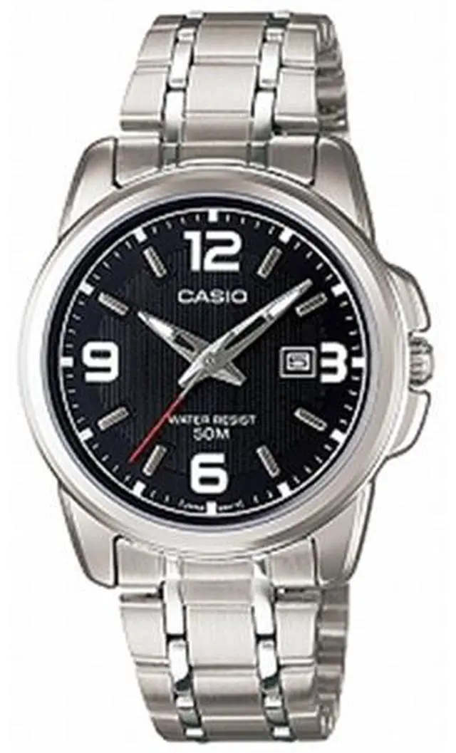 Time to upgrade to a cool, modern look. This Casio watch has a black dial set in a sleek stainless steel case. The stainless steel band is finished with a fold over clasp. It's a great casual accessory that's versatile enough to wear every day.