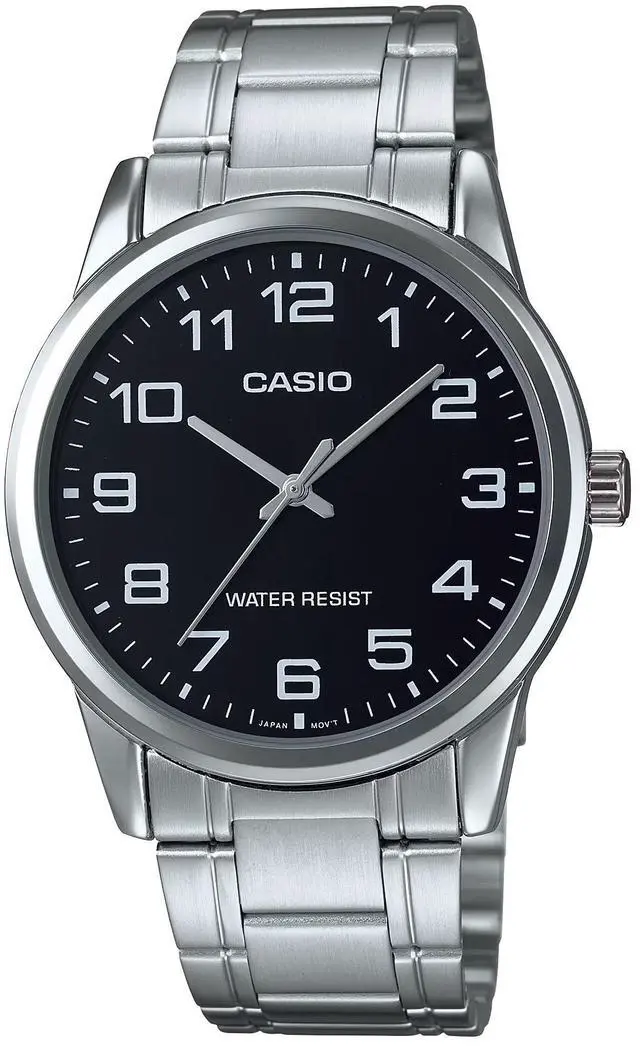 The Casio MTP-V001D-1B offers timeless simplicity and functionality in a clean, modern design. Featuring a classic black dial with bold Arabic numerals and a polished silver-tone stainless steel band, this watch is built for reliability and everyday wear. Its clear analog display ensures easy readability, while the durable build and water resistance make it a practical choice for any occasion. Ideal for men who appreciate understated elegance and lasting quality.