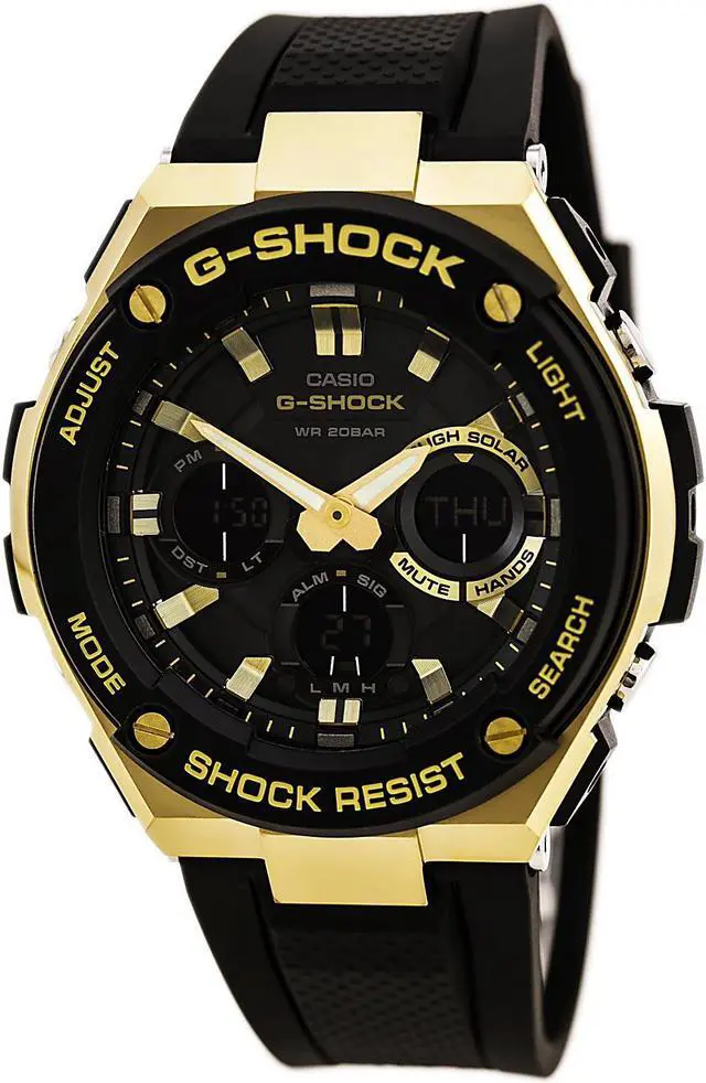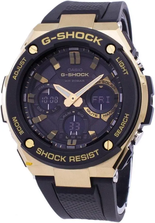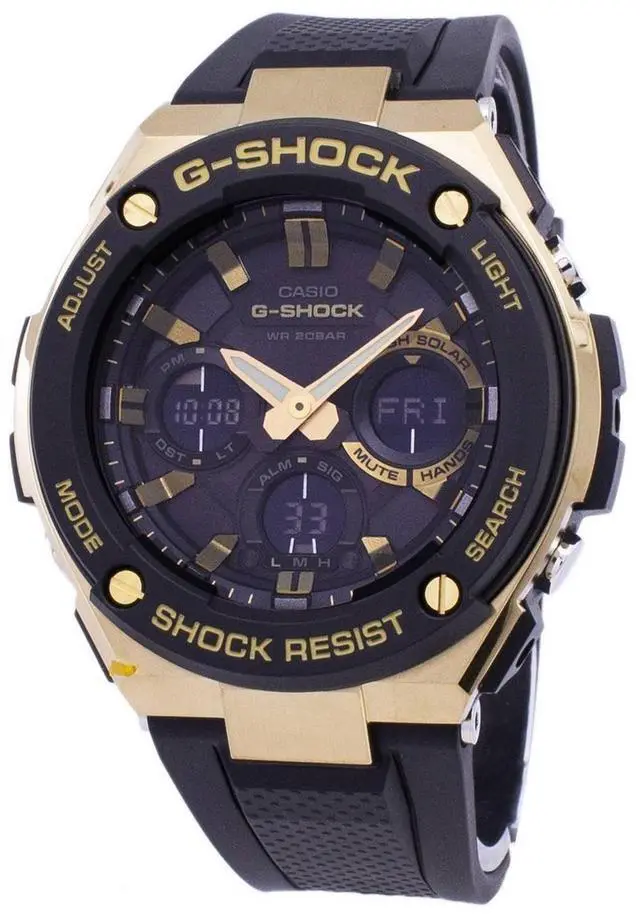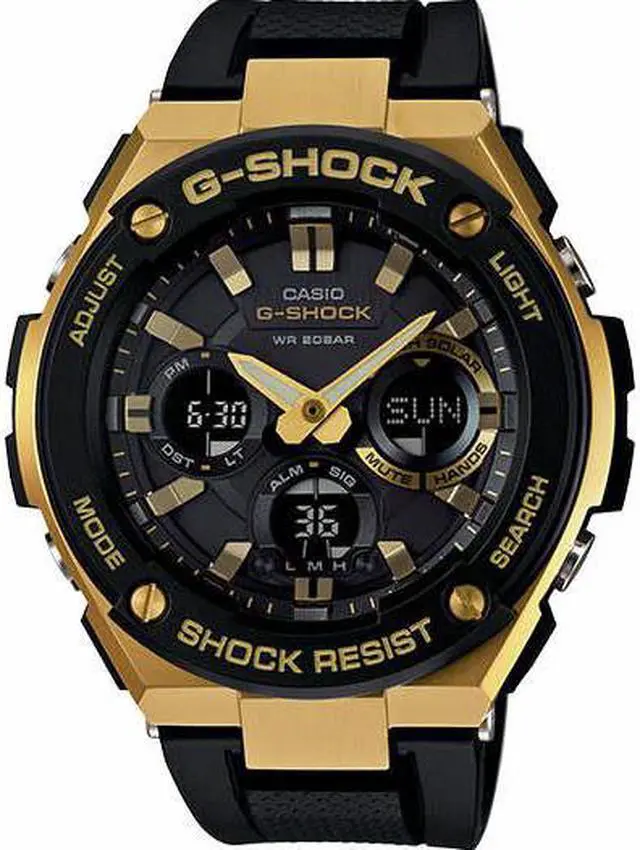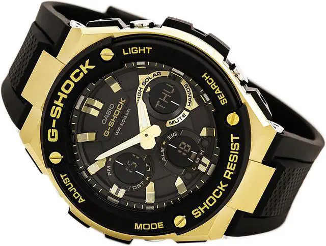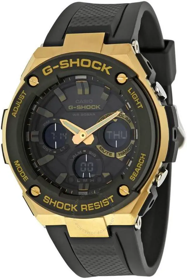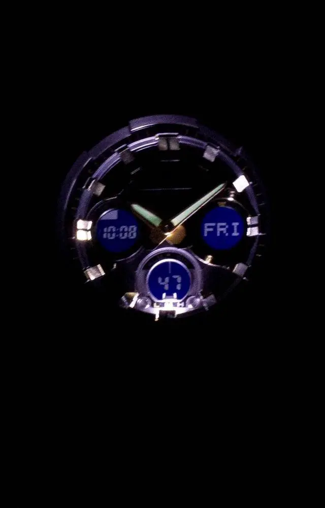 Shock Resistant. 200M Water Resistant. Solar Powered Double LED light LED light for the face (Full Auto LED Light, selectable illumination duration, Afterglow) LED Backlight for the digital display (Full Auto LED light selectable illumination duration, afterglow) World Time 31 time zones (48 cities + UTC), city code display, daylight saving on/off. 5 Daily Alarms. Hourly Time Signal. 1/100 Second Stopwatch Countdown Timer Full Auto-Calendar (pre-programmed until the year 2099). 12/24 Hour Formats. Button operation tone on/off