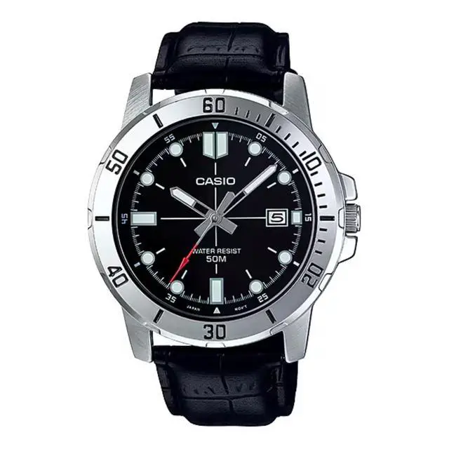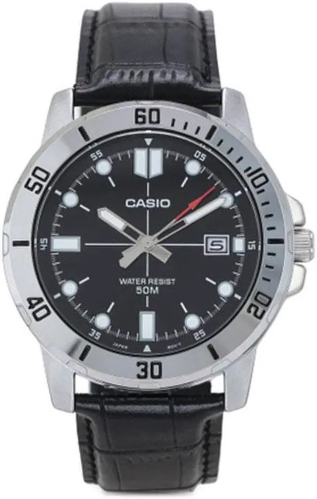 At the office or the movies, this sports and casual mens watch says you know style. Analog Quartz movement water resistant steel oval case watch and black dial with a black leather band.
