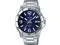 This mens analog Casio watch features a deep blue dial with bold luminous markers for clear and confident readability. The stainless steel bracelet and rotating-style bezel give the watch a sporty, modern look suited for everyday wear. A clean analog display keeps the design functional while maintaining a strong visual presence. The round case offers a comfortable yet substantial fit on the wrist. Built with water resistance, its designed to handle active daily routines with ease.