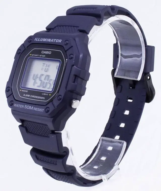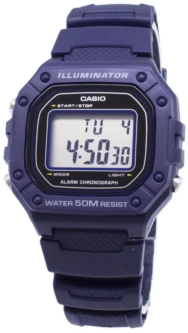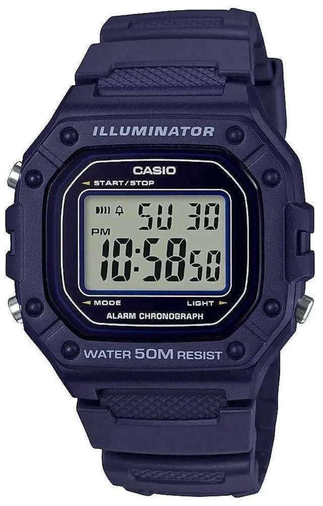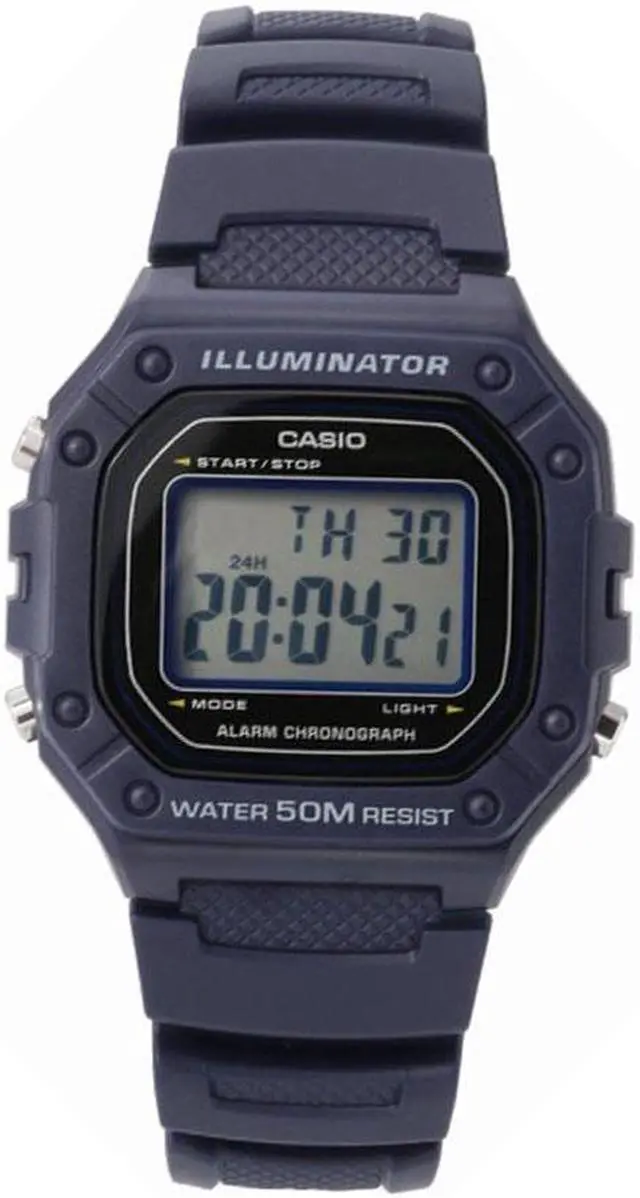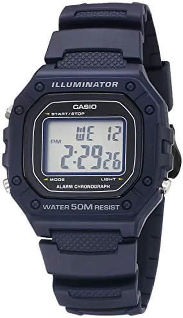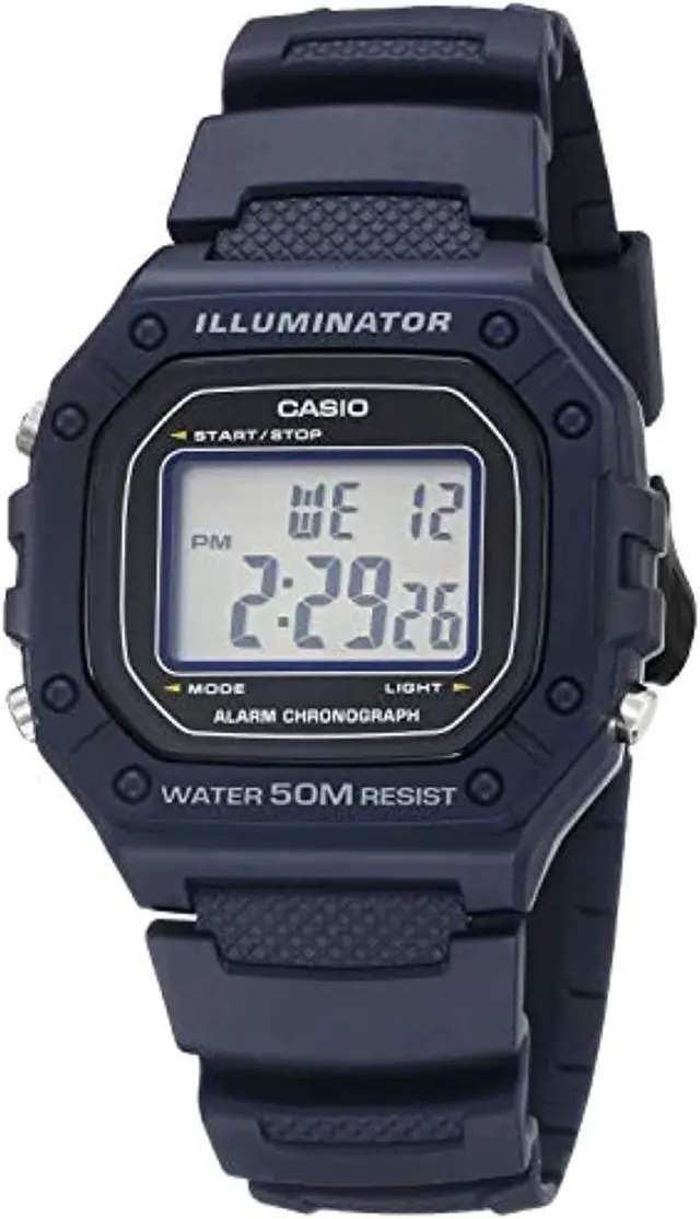 Case / bezel material: Resin Resin Band Resin Glass 50-meter water resistance LED backlight 1/100-second stopwatch Measuring capacity: 59'59.99 Measuring modes: Elapsed time, split time, 1st-2nd place times Daily alarm Hourly time signal Auto-calendar (29 days for February) 12/24-hour format Regular timekeeping: Hour, minute, second, pm, date, day Accuracy: ±30 seconds per month Approx. battery life: 7 years on CR2016 Size of case : 44.4×43.2×10.8mm Total weight : 37g
