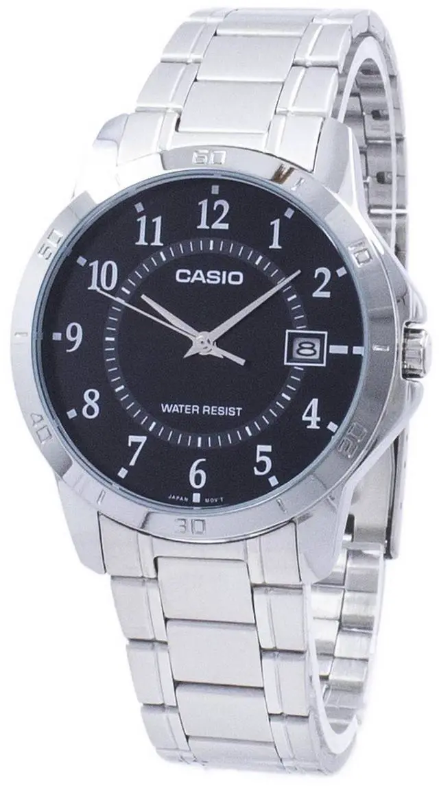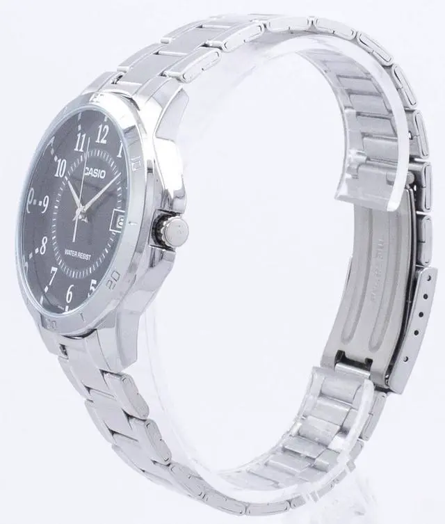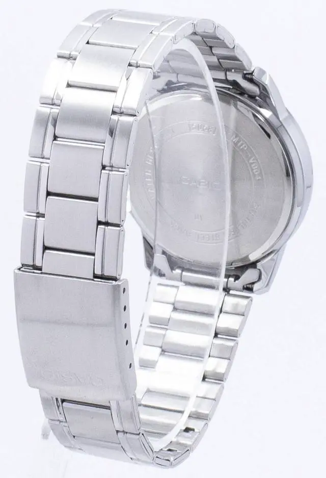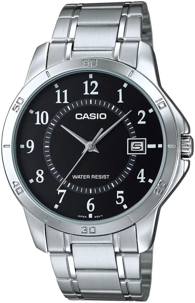The Casio MTP-V004D-1BUDF is a classic analog timepiece that balances timeless style with everyday functionality. Featuring a black dial housed in a polished stainless steel case and matched with a stainless steel bracelet, this watch offers a streamlined and versatile look ideal for both casual and dress occasions. It includes a date display at the 3 oclock position, mineral glass crystal for clarity and protection, and a Water Resistant rating suitable for daily wear.