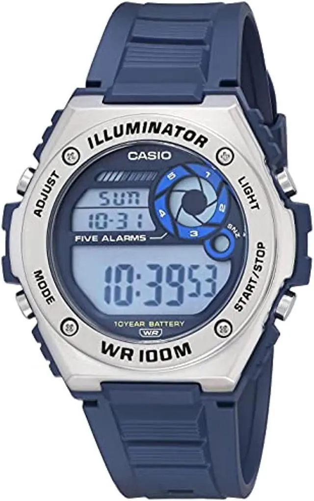 casio men's heavy duty digital 10 year battery quartz resin strap, blue, 25.7 casual watch (model: mwd-100h-2avcf)